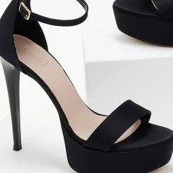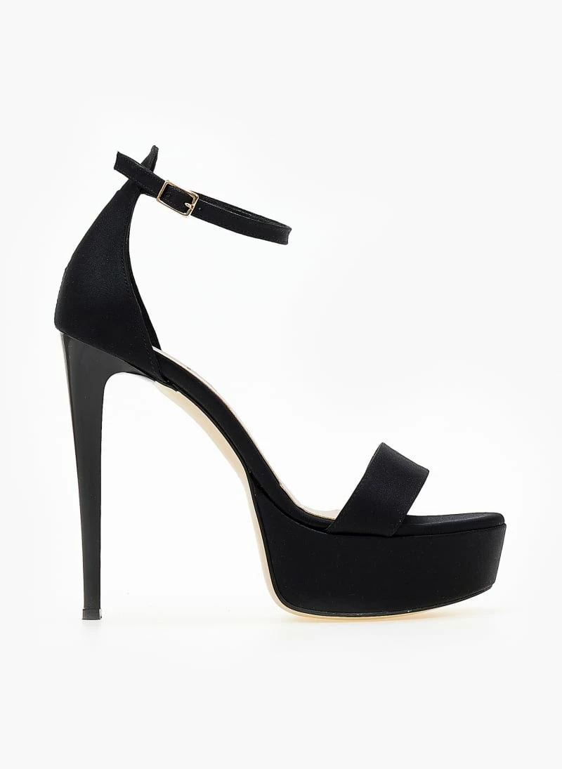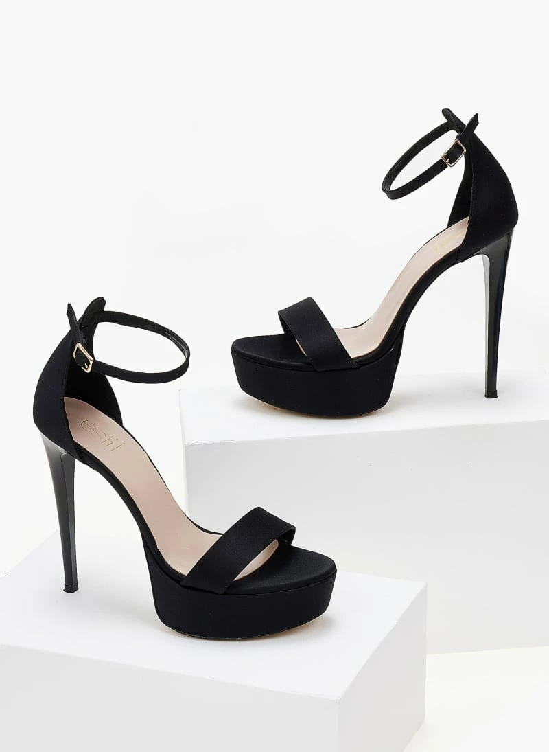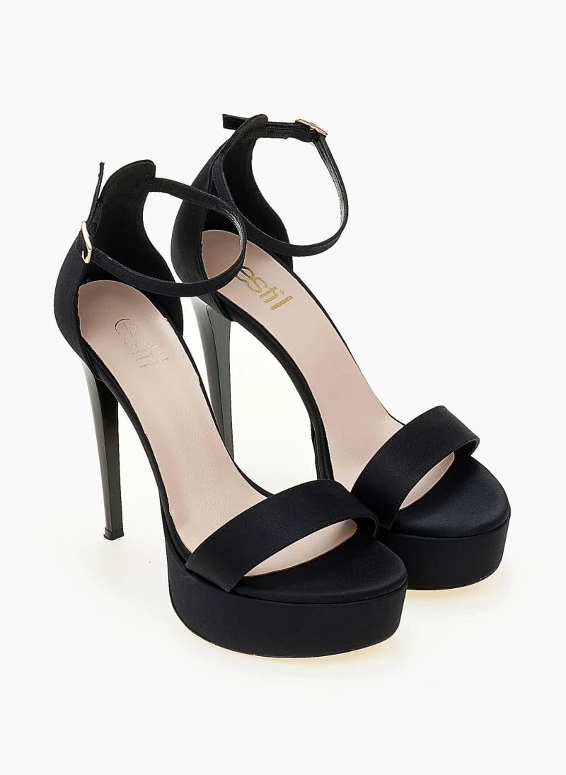 Πέδιλα σατέν TFP με κλειστή φτέρνα. Δένουν με μπαρέτα στο ύψος του αστραγάλου. Έχουν ψηλό λεπτό τακούνι και φιάπα.