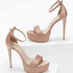 Πέδιλα σατέν TFP με κλειστή φτέρνα. Δένουν με μπαρέτα στο ύψος του αστραγάλου. Έχουν ψηλό λεπτό τακούνι και φιάπα.