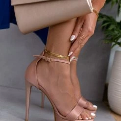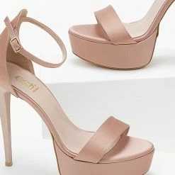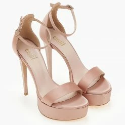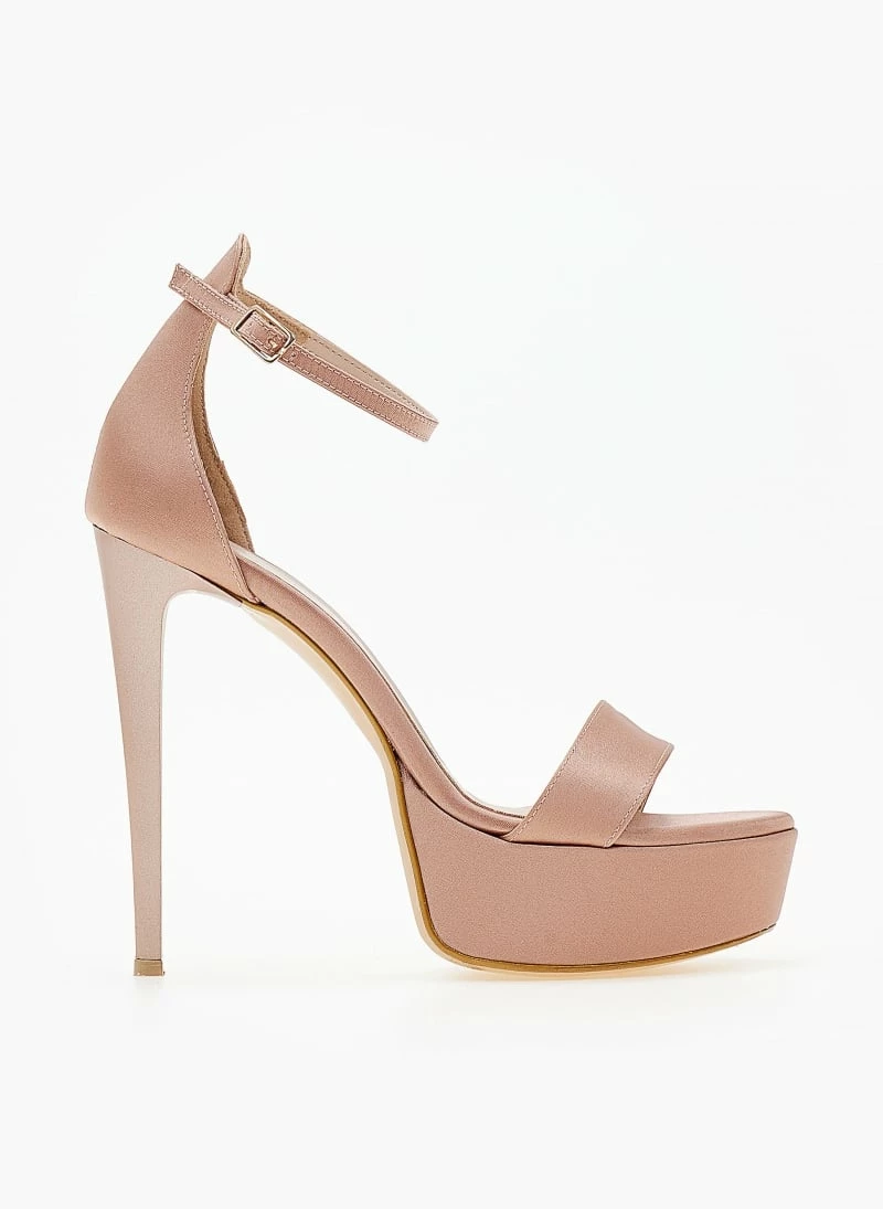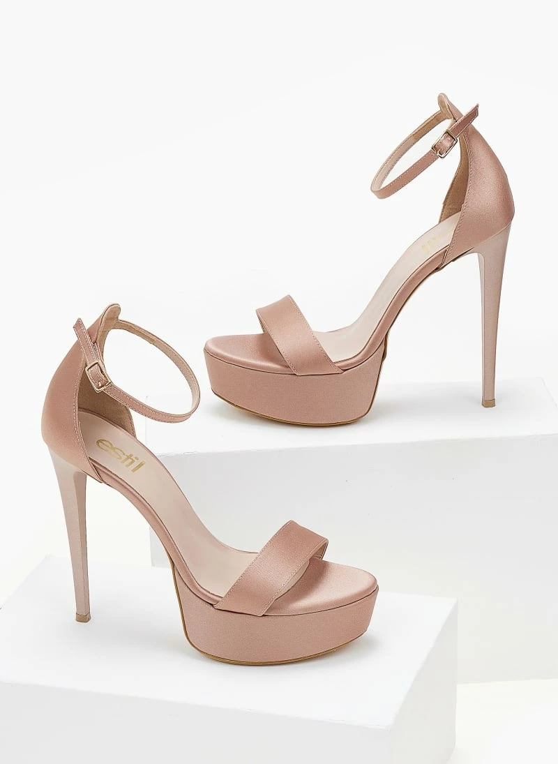Πέδιλα σατέν TFP με κλειστή φτέρνα. Δένουν με μπαρέτα στο ύψος του αστραγάλου. Έχουν ψηλό λεπτό τακούνι και φιάπα.