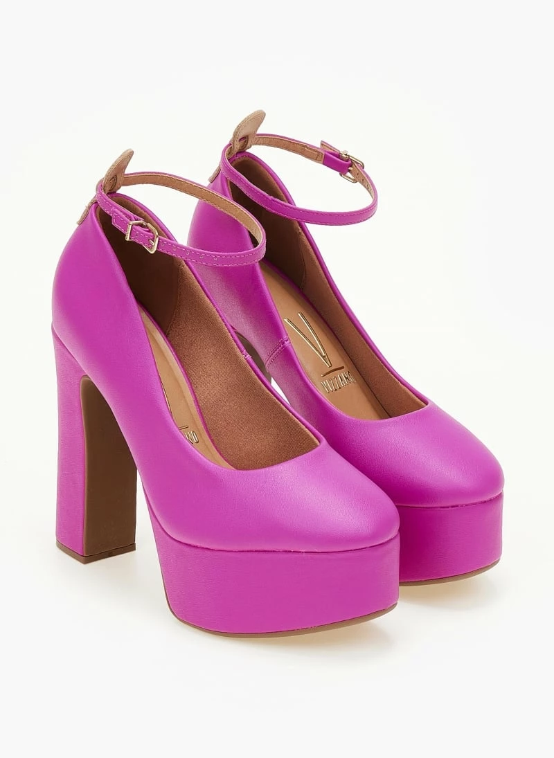 Platform γόβες VIZZANO. Έχουν ψηλή φιάπα και χοντρό τακούνι. Δένουν με μπαρέτα στο ύψος του αστραγάλου. Στρογγυλή γραμμή. Έχουν μαλακό ανατομικό πάτο. Σόλα με λάστιχο.