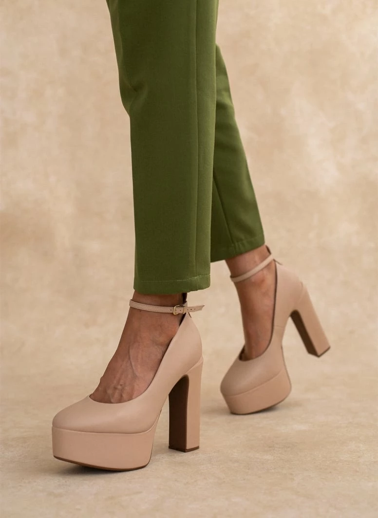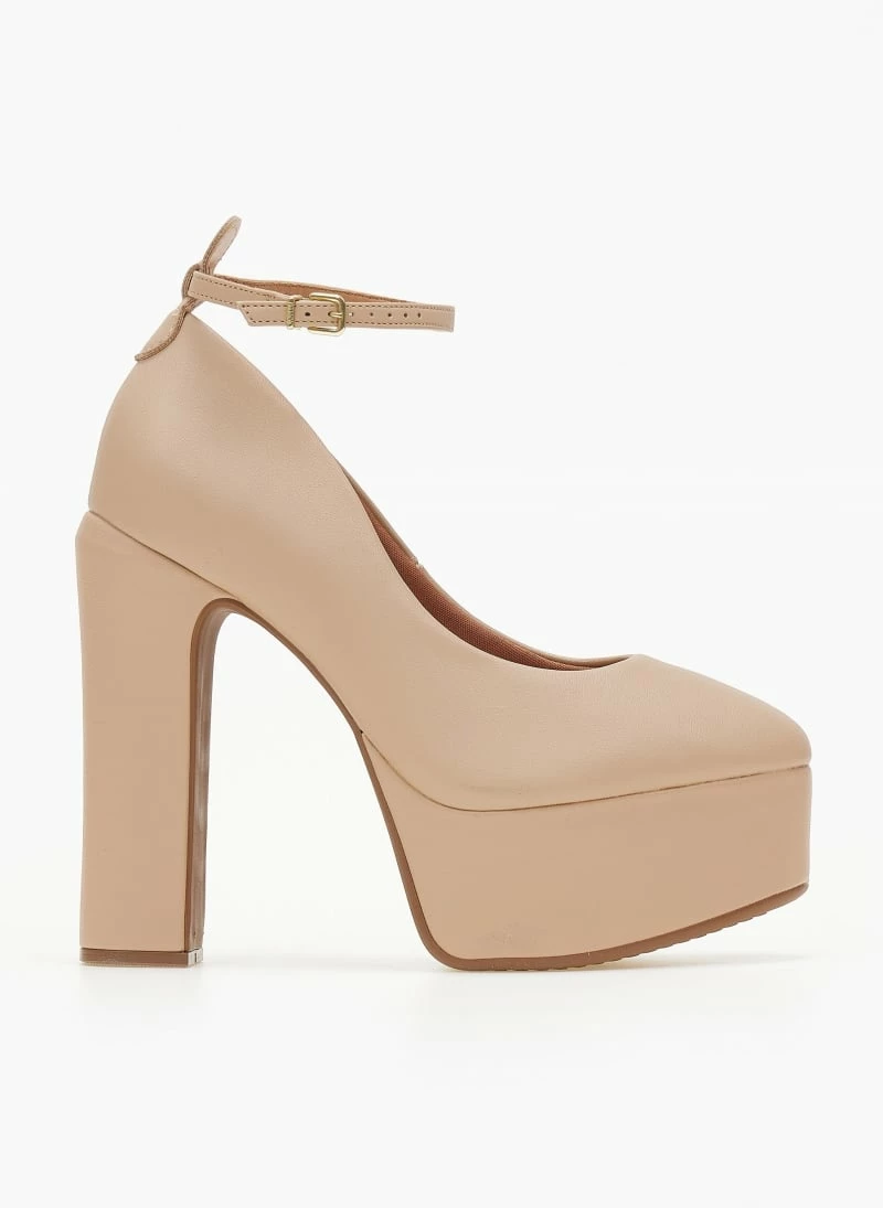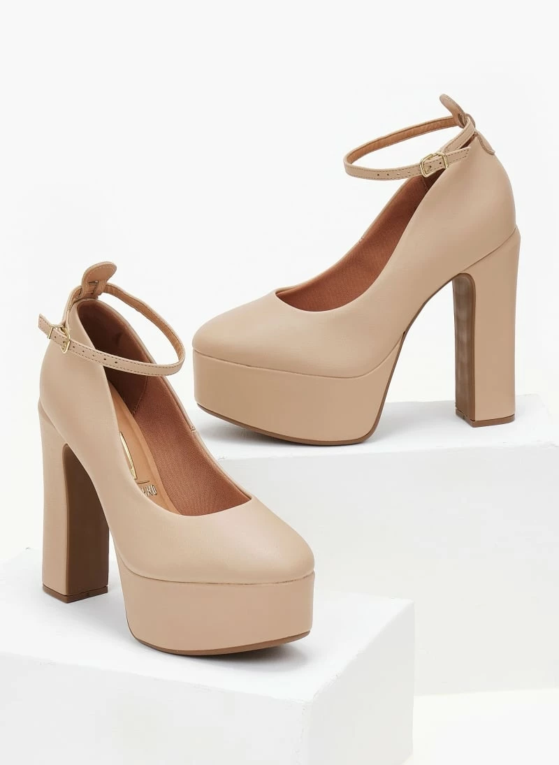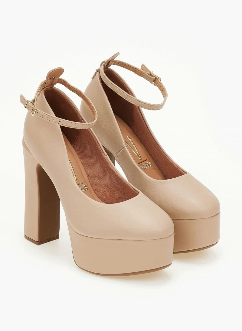 Platform γόβες VIZZANO. Έχουν ψηλή φιάπα και χοντρό τακούνι. Δένουν με μπαρέτα στο ύψος του αστραγάλου. Στρογγυλή γραμμή. Έχουν μαλακό ανατομικό πάτο. Σόλα με λάστιχο.