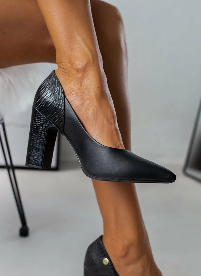 Γόβες μυτερές VIZZANO. Έχουν ανάγλυφο σχέδιο στο πίσω μέρος και το τακούνι. Διακριτικό μεταλλικό στοιχείο στο πλάι. Διαθέτουν ανατομικό μαξιλαράκι στο πέλμα. Λάστιχο στη σόλα.