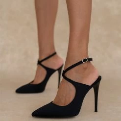 Γόβες μυτερές με χιαστί δέσιμο Tfp – Μαύρο