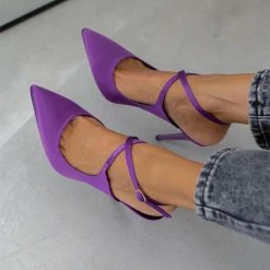 Γόβες μυτερές με χιαστί δέσιμο Tfp – Μωβ