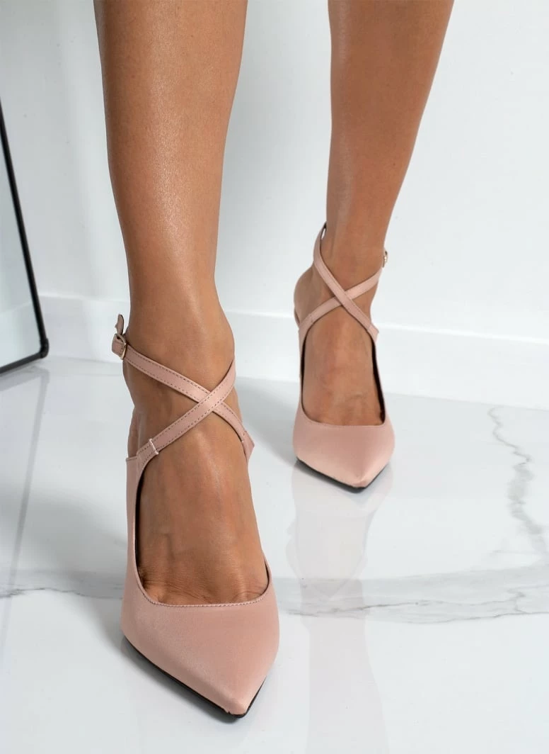 Γόβες μυτερές με χιαστί δέσιμο Tfp – Nude