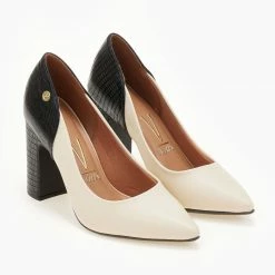 Γόβες μυτερές VIZZANO με διχρωμία. Συνδυάζουν ματ και ανάγλυφο τεχνόδερμα. Έχουν ανατομικό μαξιλαράκι στο πέλμα. Λάστιχο στη σόλα.