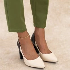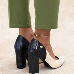 Γόβες μυτερές VIZZANO με διχρωμία. Συνδυάζουν ματ και ανάγλυφο τεχνόδερμα. Έχουν ανατομικό μαξιλαράκι στο πέλμα. Λάστιχο στη σόλα.