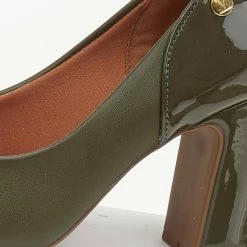 Γόβες μυτερές VIZZANO με ψηλό χοντρό τακούνι. Συνδυάζουν τεχνόδερμα και λουστρίνι. Διαθέτουν ανατομικό μαξιλαράκι στο πέλμα. Λάστιχο στη σόλα.