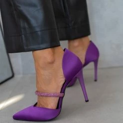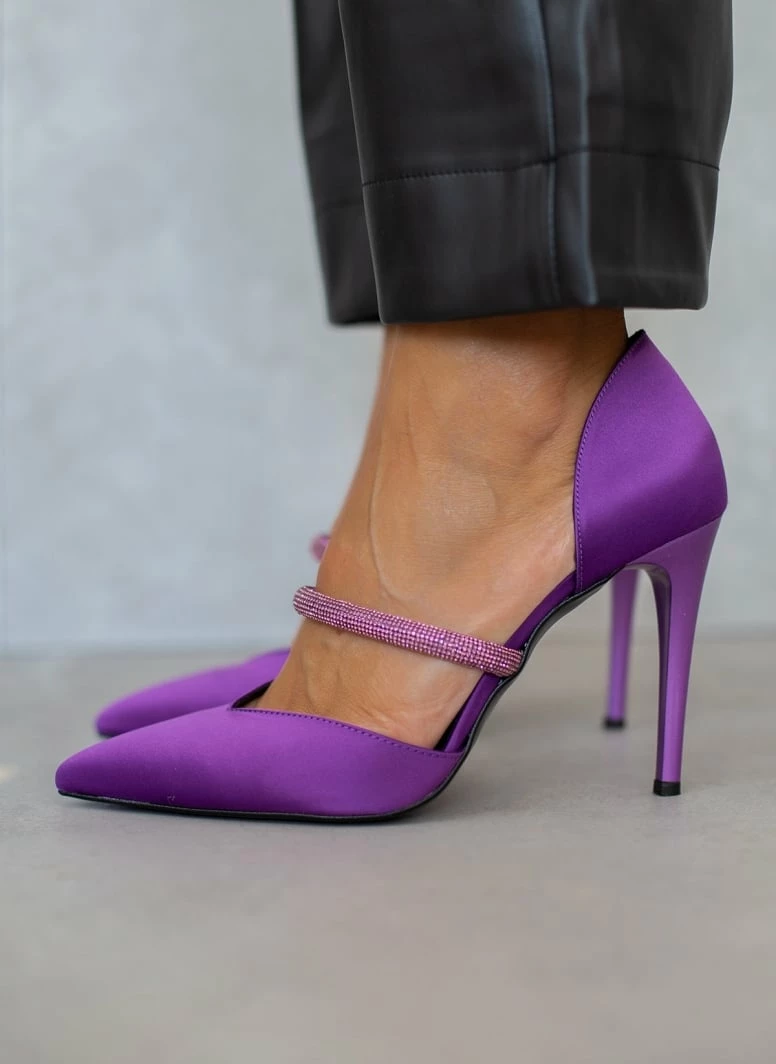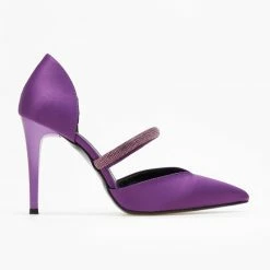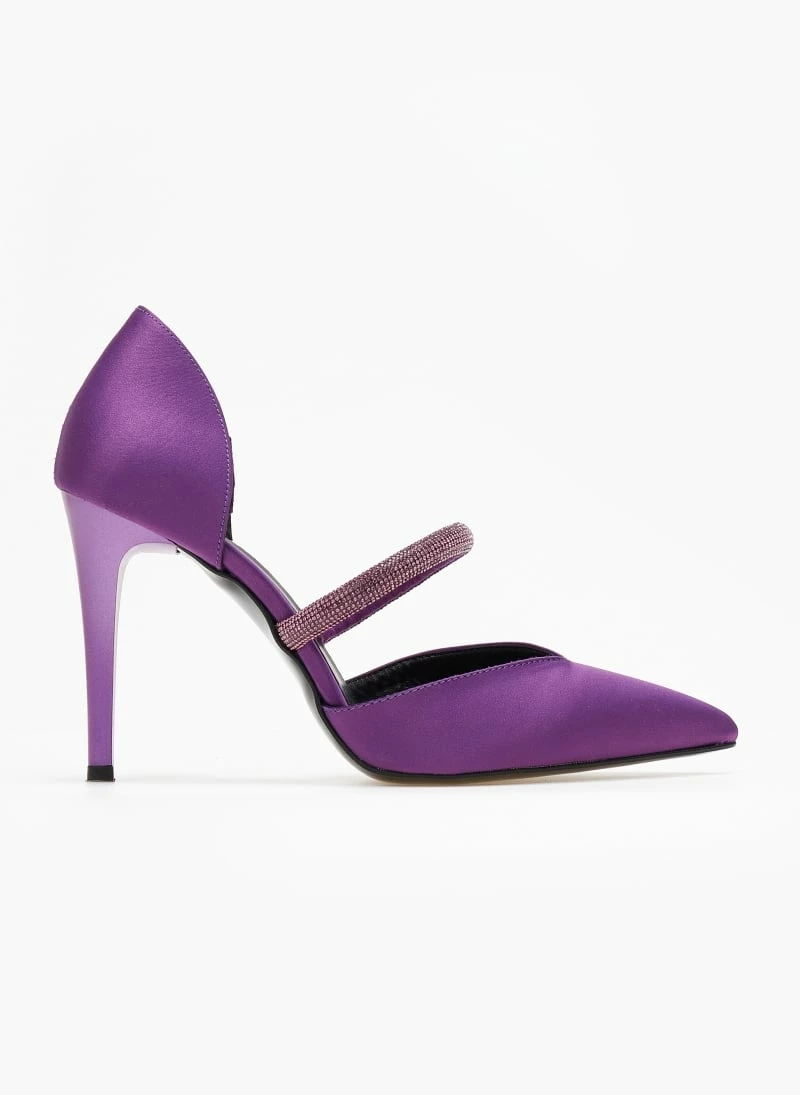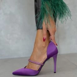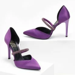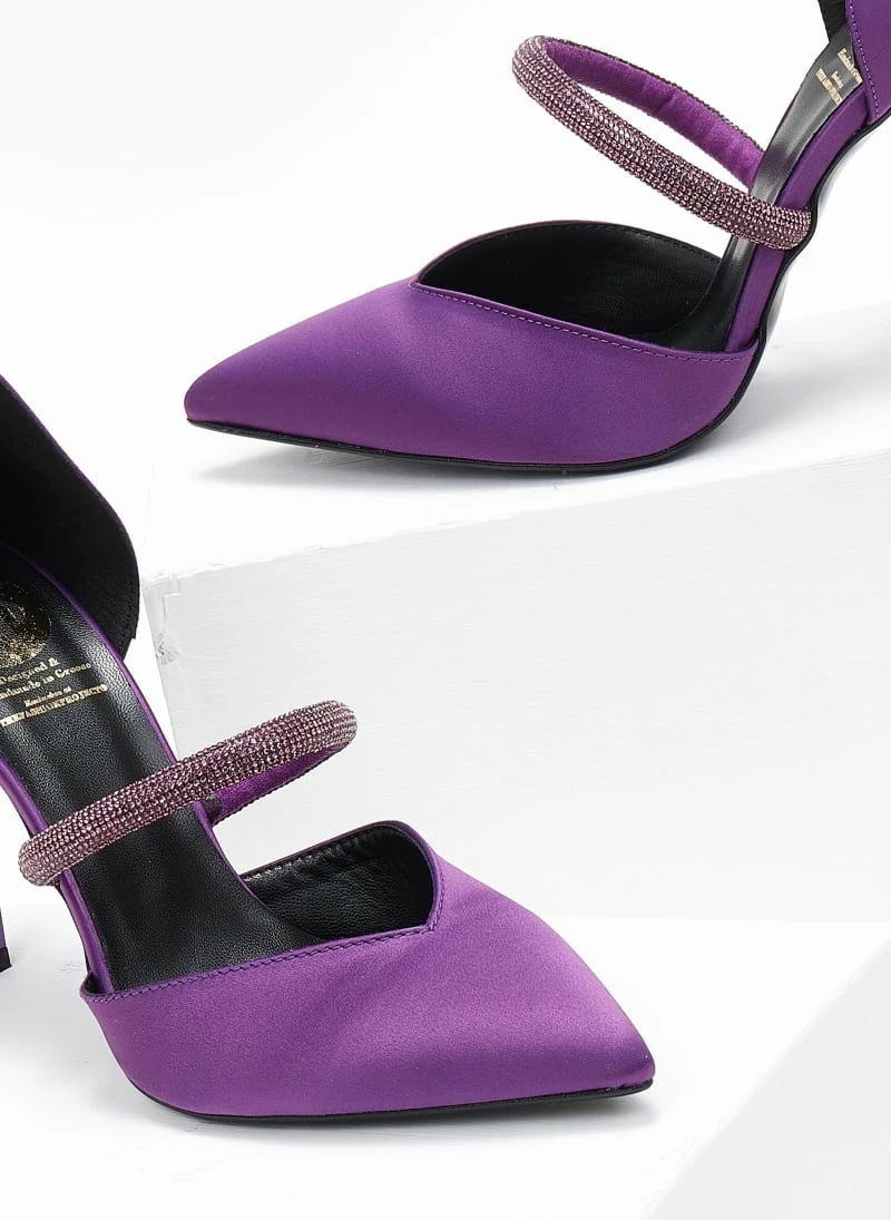 Γόβες σατέν ανοιχτές με Strass Tfp – Μωβ