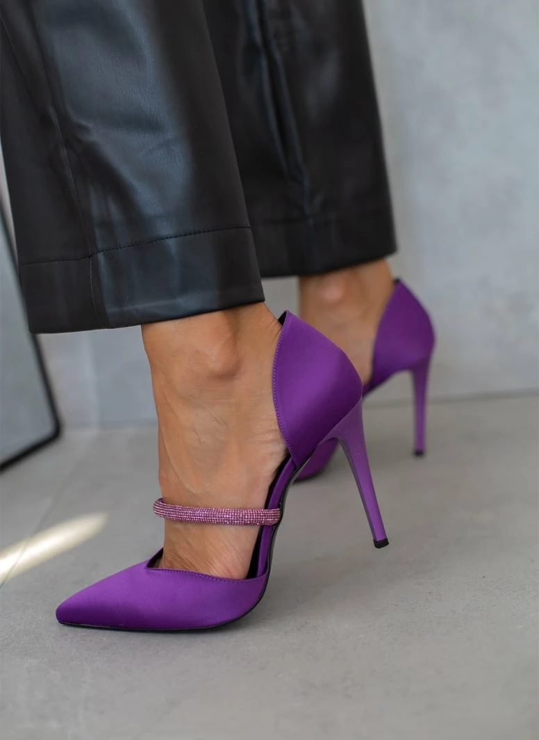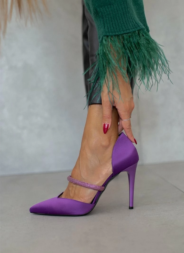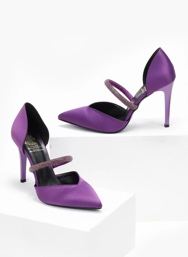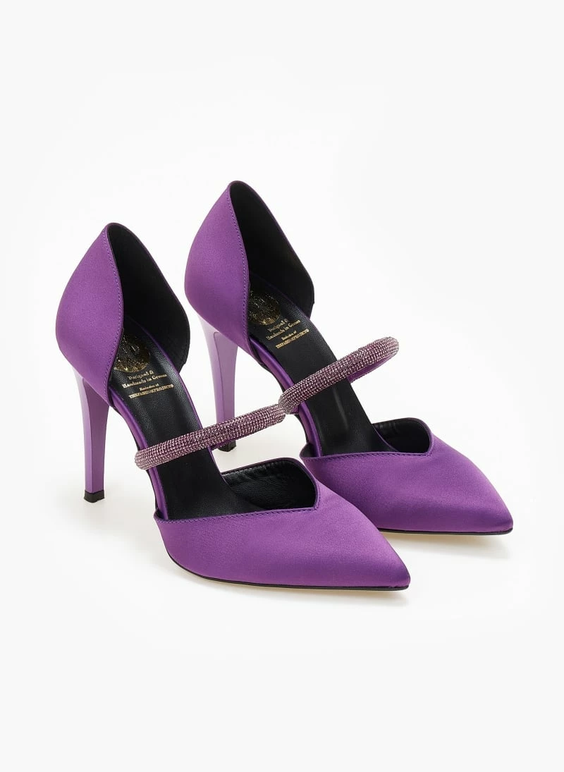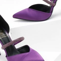 Γόβες σατέν ανοιχτές με Strass Tfp – Μωβ