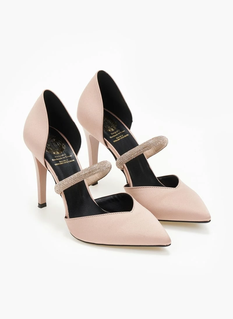 Γόβες σατέν ανοιχτές με Strass Tfp – Nude