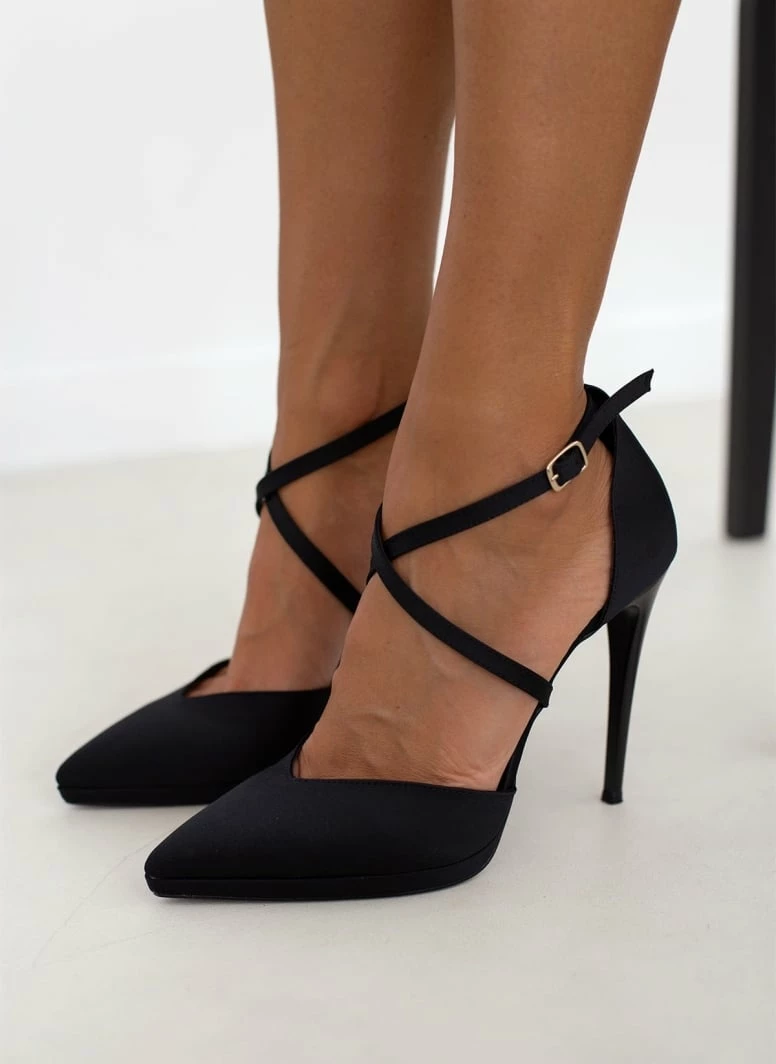 Γόβες σατέν με δέσιμο χιαστί Tfp Exclusive – Μαύρο
