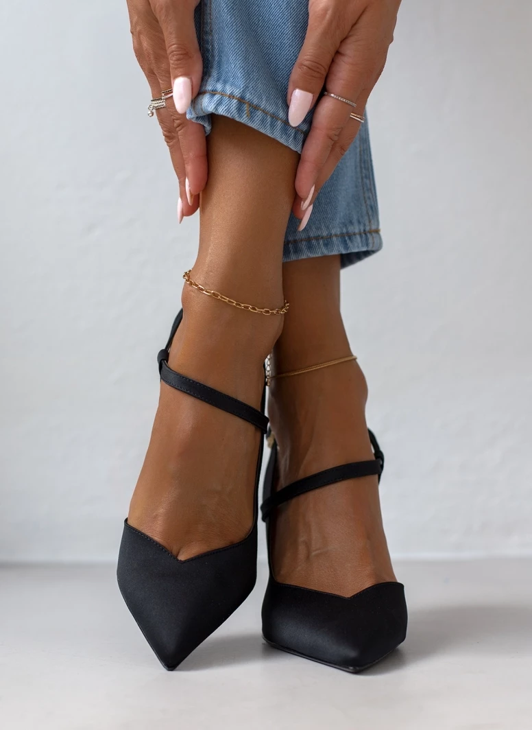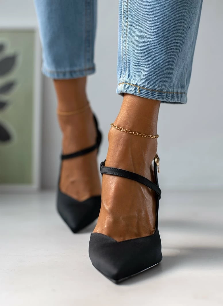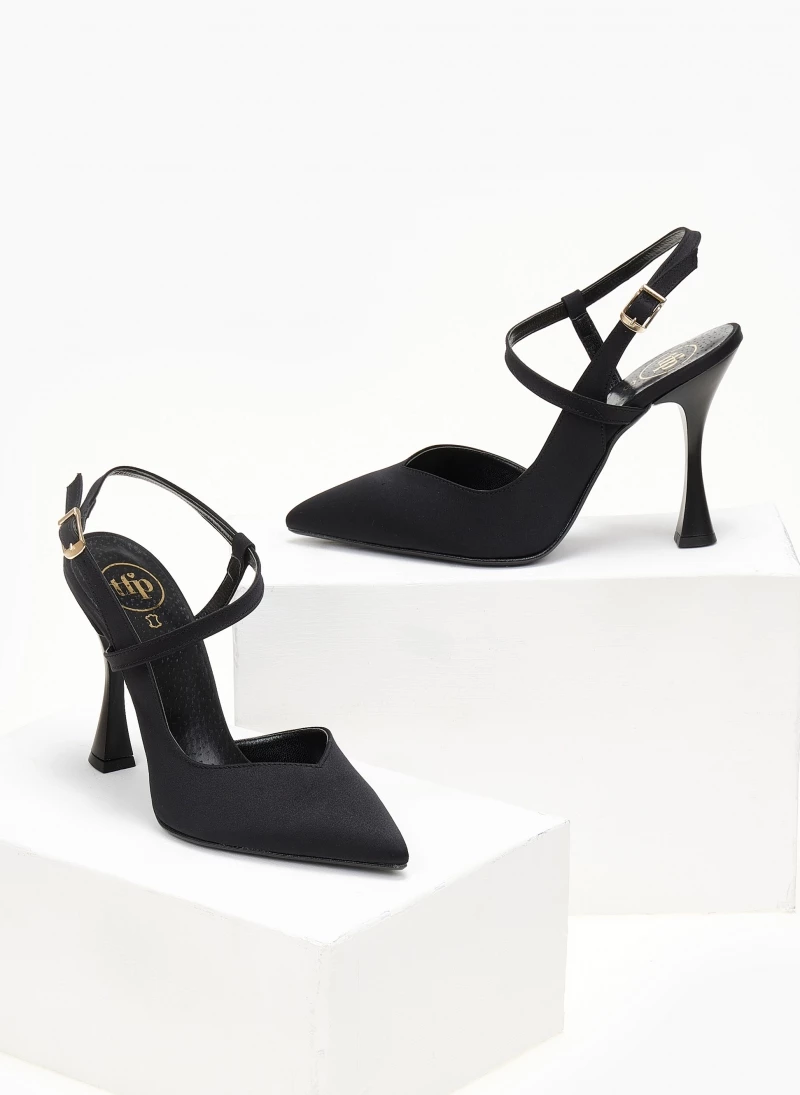 Γόβες σατέν με λοξό λουράκι Tfp – Μαύρο