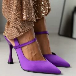 Γόβες σατέν με λοξό λουράκι Tfp – Μωβ