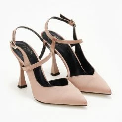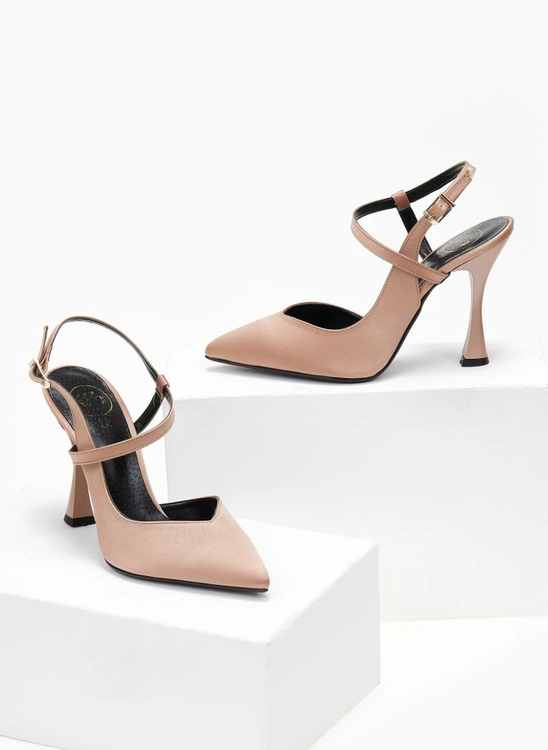 Γόβες σατέν με λοξό λουράκι Tfp – Nude
