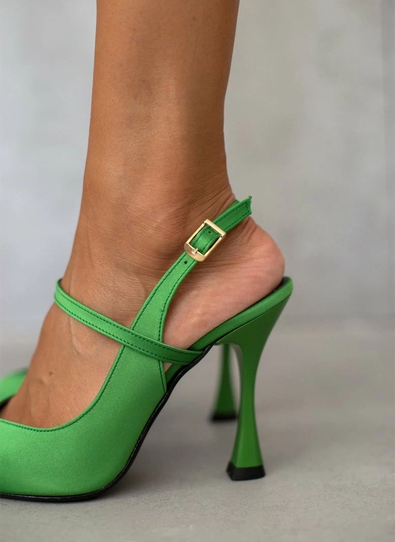 Γόβες σατέν με λοξό λουράκι Tfp – Πράσινο