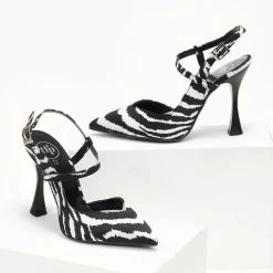 Γόβες σατέν με Print Tfp – Λευκό/Μαύρο