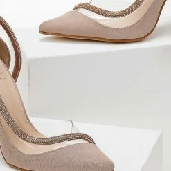 Γόβες Suede με διαφάνεια και στρας Tfp – Nude