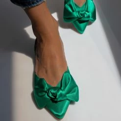 IRIS Mules σατέν με φιόγκο Tfp – Σμαραγδί