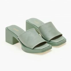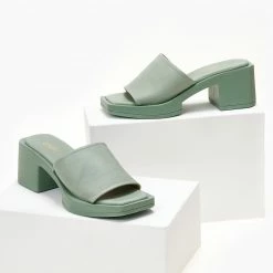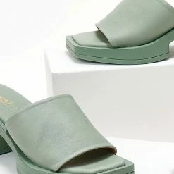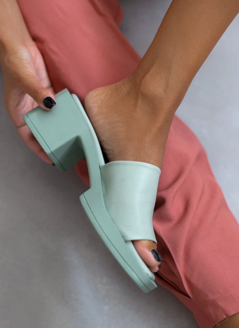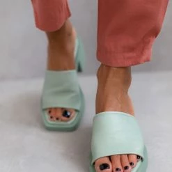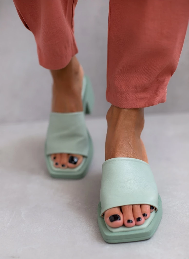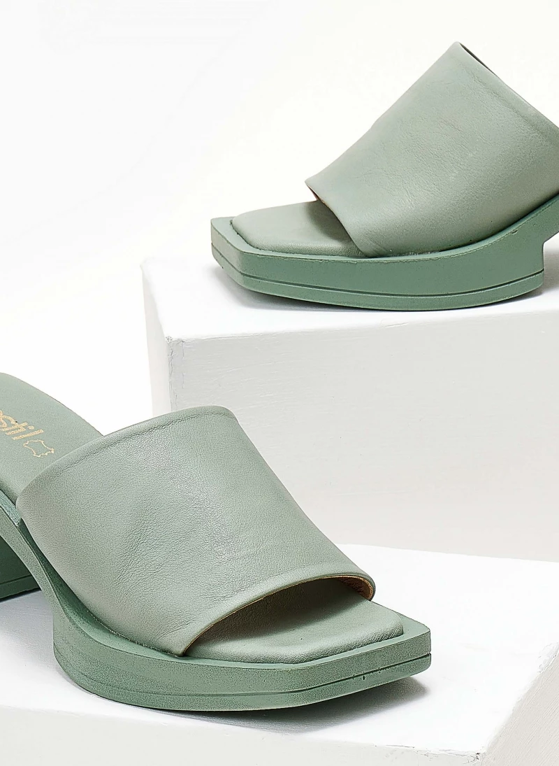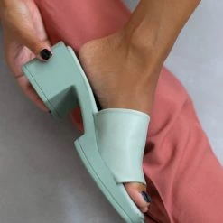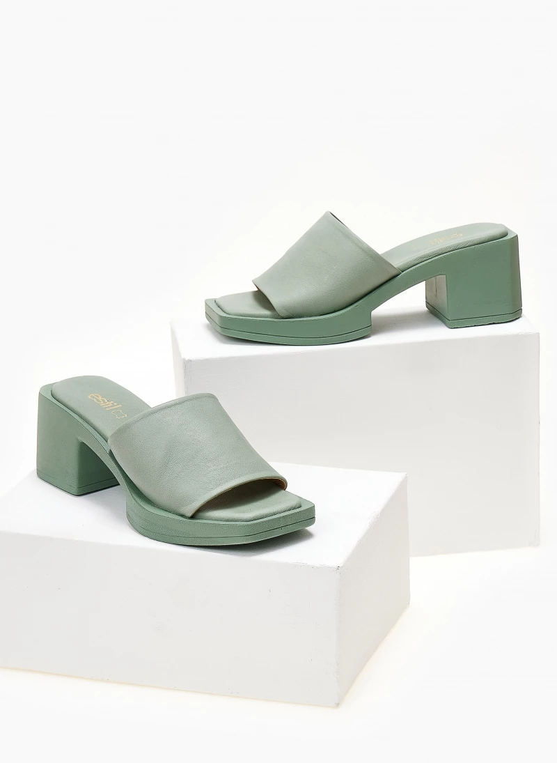 Mules δερμάτινα με χαμηλό τακούνι Estil – Μέντα