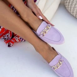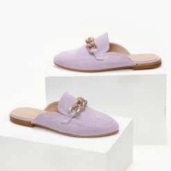 Mules καστόρινα με αλυσίδα Estil – Λιλά