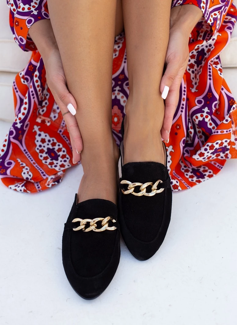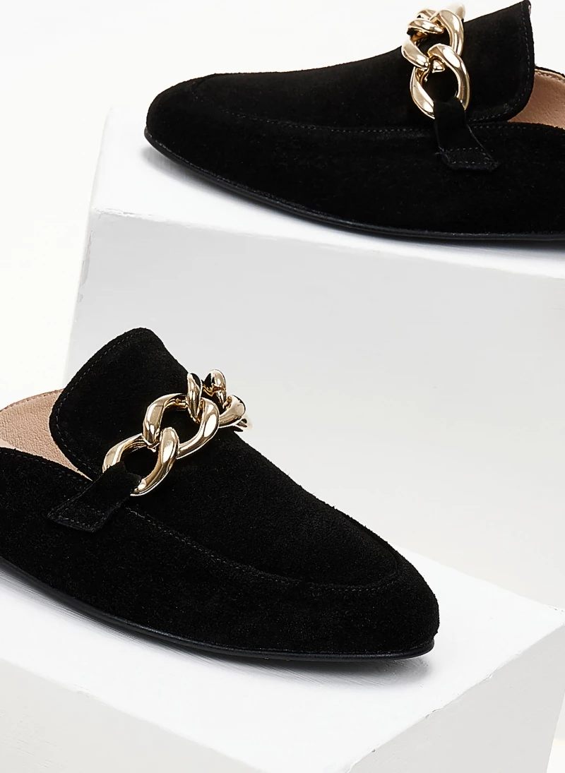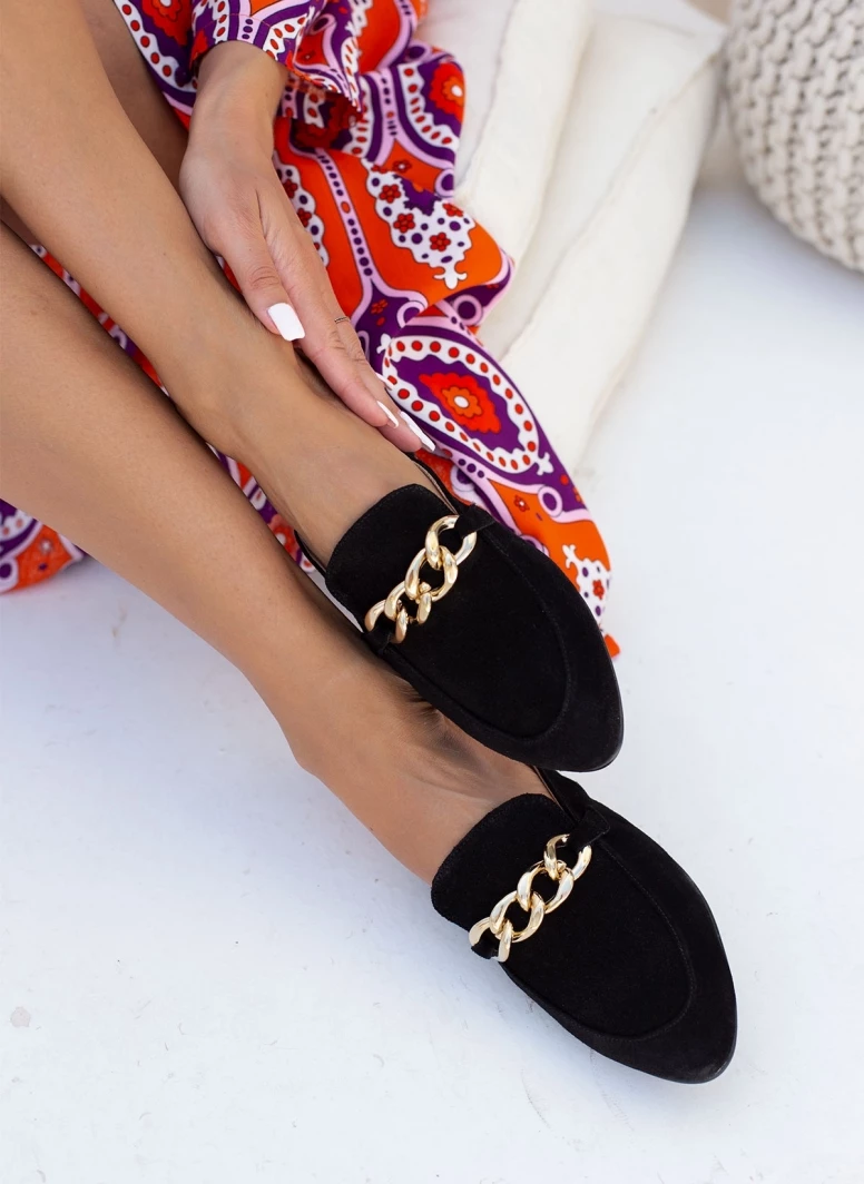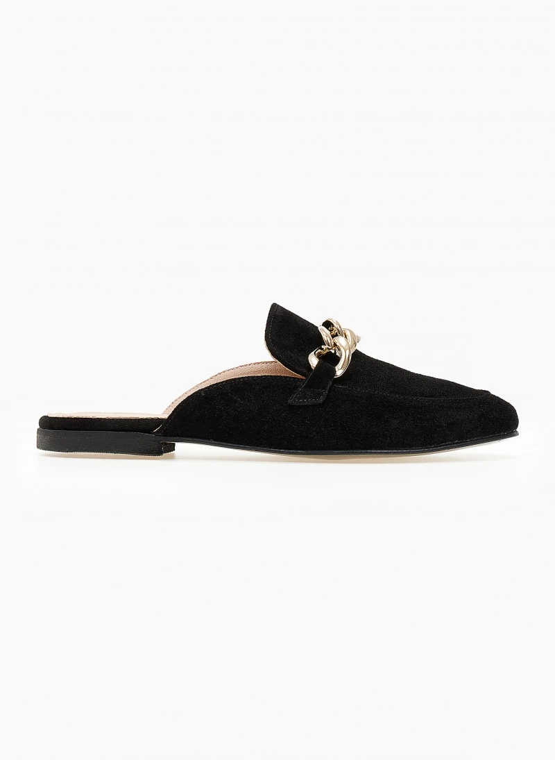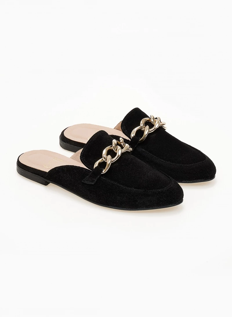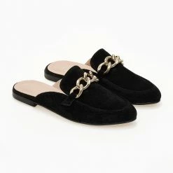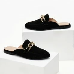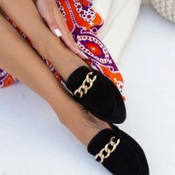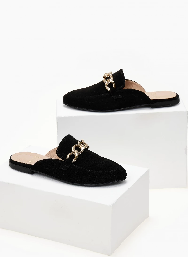 Mules καστόρινα με αλυσίδα Estil – Μαύρο