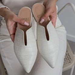 Mules κλειστά κροκό με άνοιγμα Estil – Λευκό