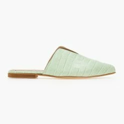 Mules χωρίς τακούνι με pattern κροκό. Είναι μυτερά και έχουν άνοιγμα. Ελληνικής κατασκευής.