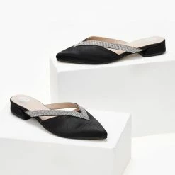Mules σατέν με ανοίγματα και Strass Tfp – Μαύρο