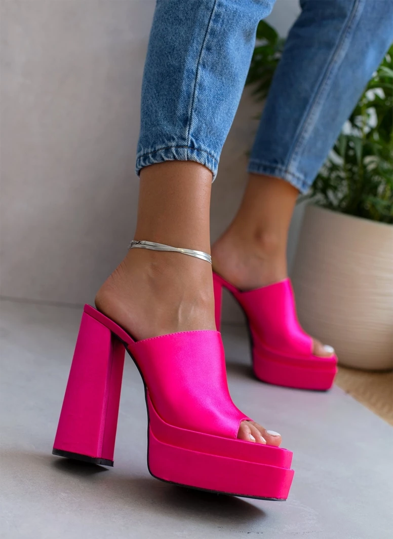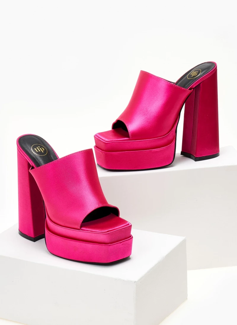 Mules σατέν με Platform τακούνι Tfp – Φούξια