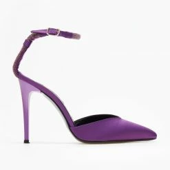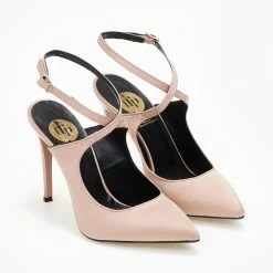 Mules σατέν Estil σε καρέ γραμμή. Έχουν ψηλό τακούνι με ιδιαίτερο σχήμα. Ελληνικής κατασκευής.