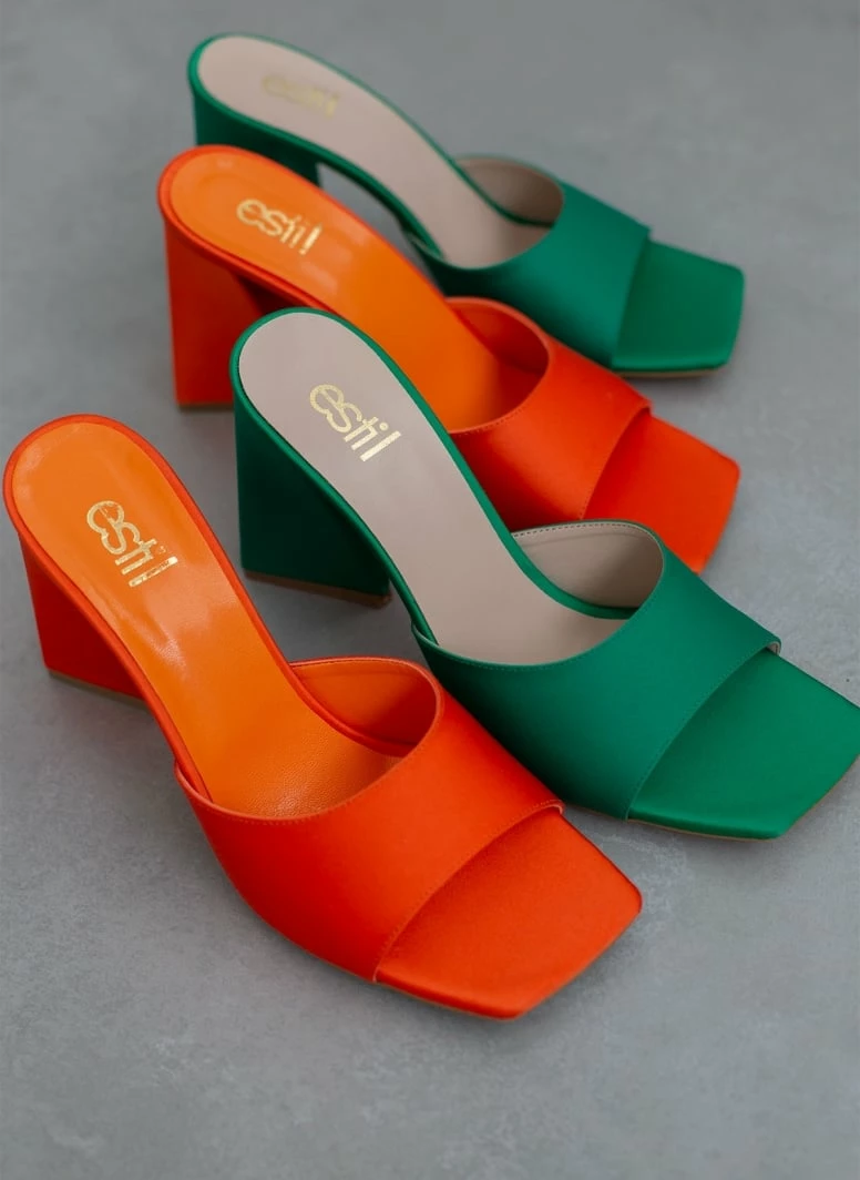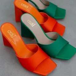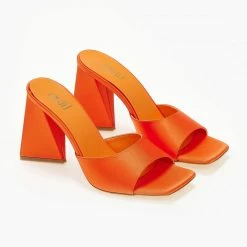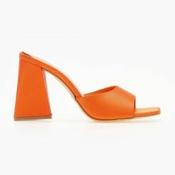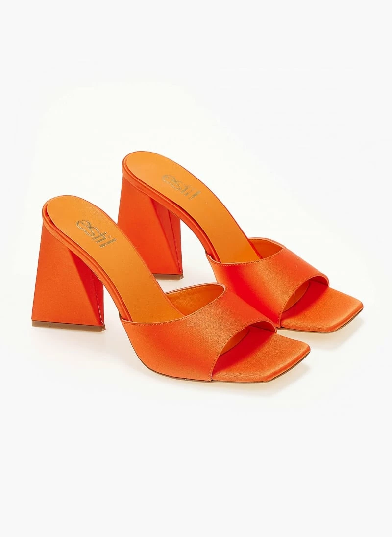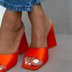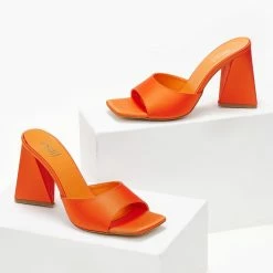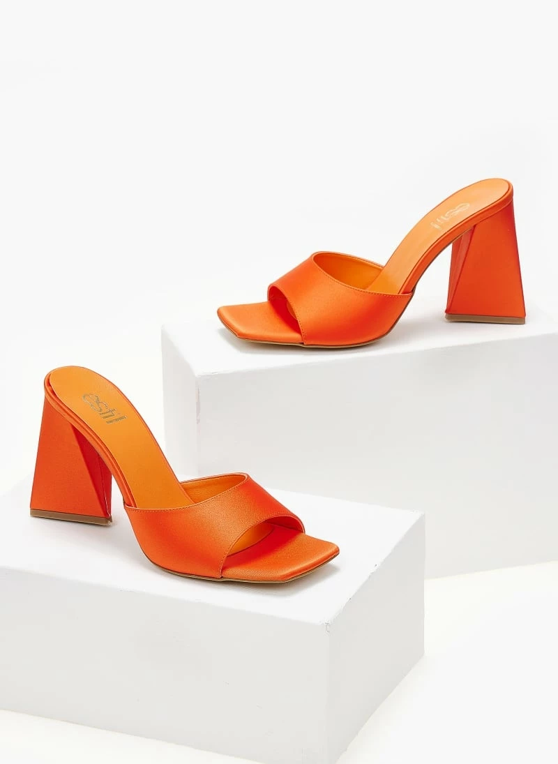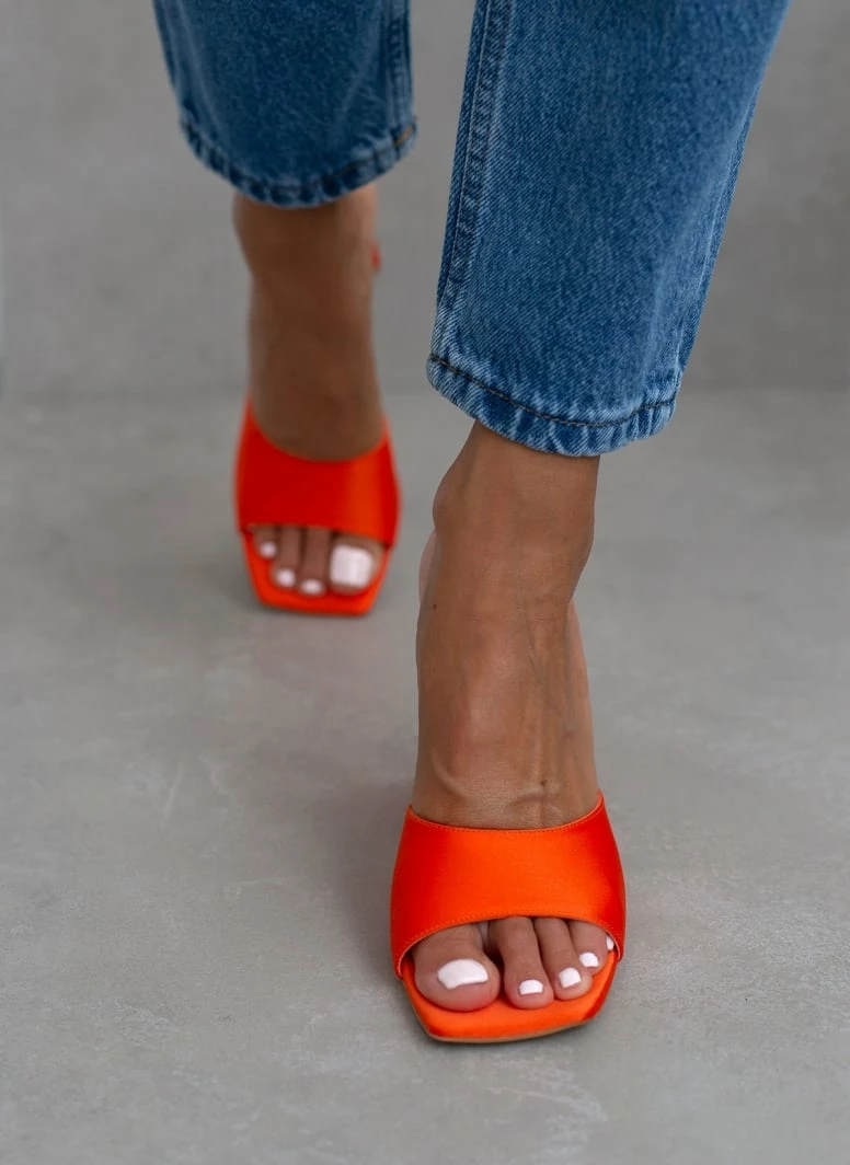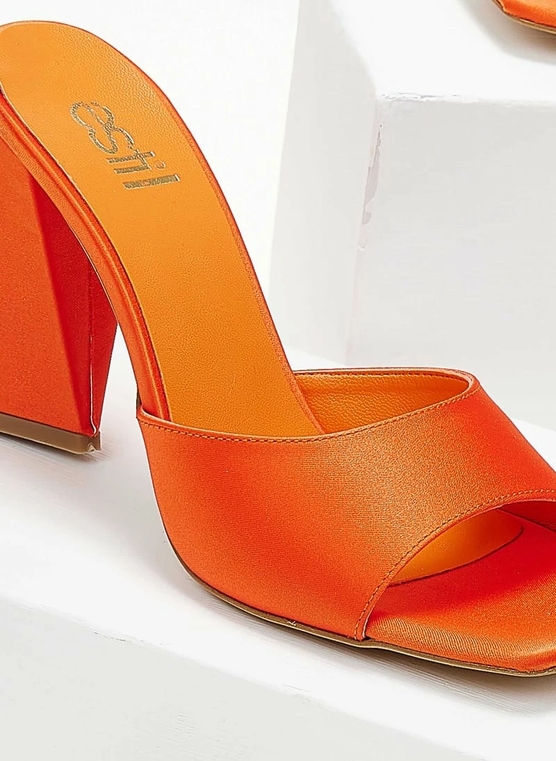 Mules σατέν σε καρέ γραμμή Estil – Πορτοκαλί