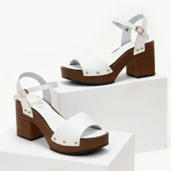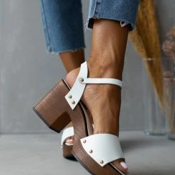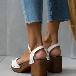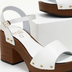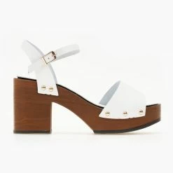 Πέδιλα δερμάτινα Estil με ξύλινη σόλα – Λευκό