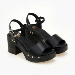 Πέδιλα δερμάτινα Estil με ξύλινη σόλα – Μαύρο
