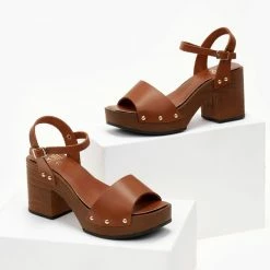 Πέδιλα δερμάτινα Estil με ξύλινη σόλα – Ταμπά