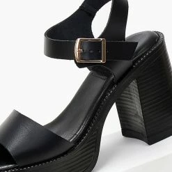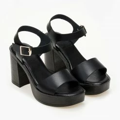 Πέδιλα δερμάτινα με χοντρό τακούνι Tfp – Μαύρο