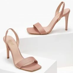 Πέδιλα Estil σατέν με λεπτή φάσα – Nude