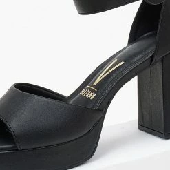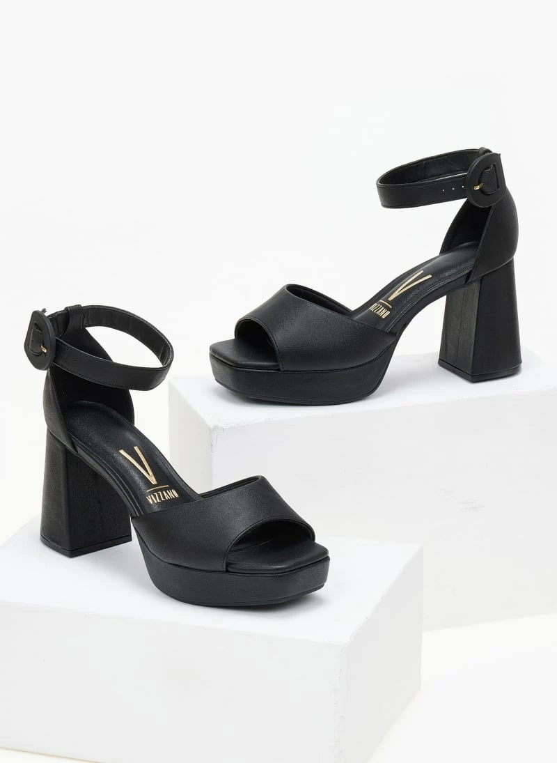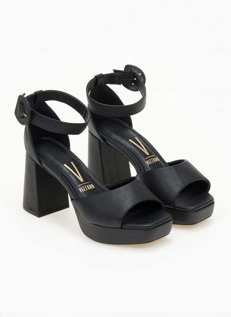 Πέδιλα VIZZANO με φιάπα και ψηλό χοντρό τακούνι. Έχουν φαρδιά φάσα. Καρέ γραμμή. Η φτέρνα είναι κλειστή . Δένουν με μπαρέτα στο ύψος του αστραγάλου. Διαθέτουν ανατομικό πάτο με μαξιλαράκι. Λάστιχο στη σόλα.