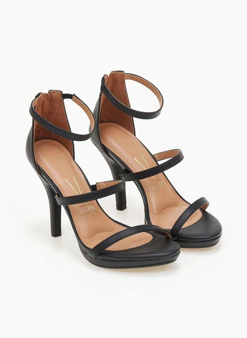 Πέδιλα VIZZANO με λεπτά λουράκια . Έχουν κλειστή φτέρνα με φερμουάρ. Ο πάτος είναι μαλακός ανατομικός. Στρογγυλή γραμμή. Λάστιχο στη σόλα.