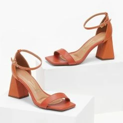 Πέδιλα σε καρέ γραμμή με λεπτή φάσα. Έχουν ανάγλυφο pattern στο πίσω μέρος και το τακούνι. Κλειστή φτέρνα. Δένουν με μπαρέτα στο ύψος του αστραγάλου. Διαθέτουν ενίσχυση με μαξιλαράκι στον πάτο.