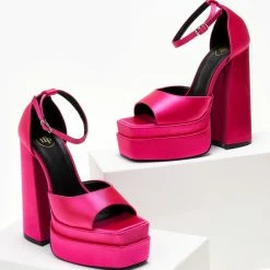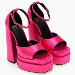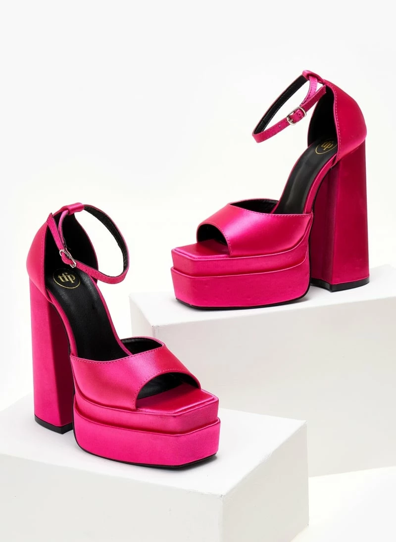 Πέδιλα Platform σατέν TFP με μπαρέτα – Φούξια