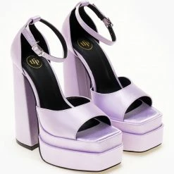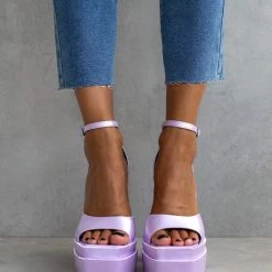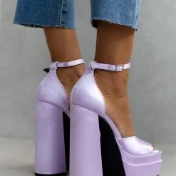 Πέδιλα Platform σατέν TFP με μπαρέτα – Λιλά
