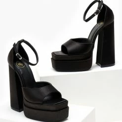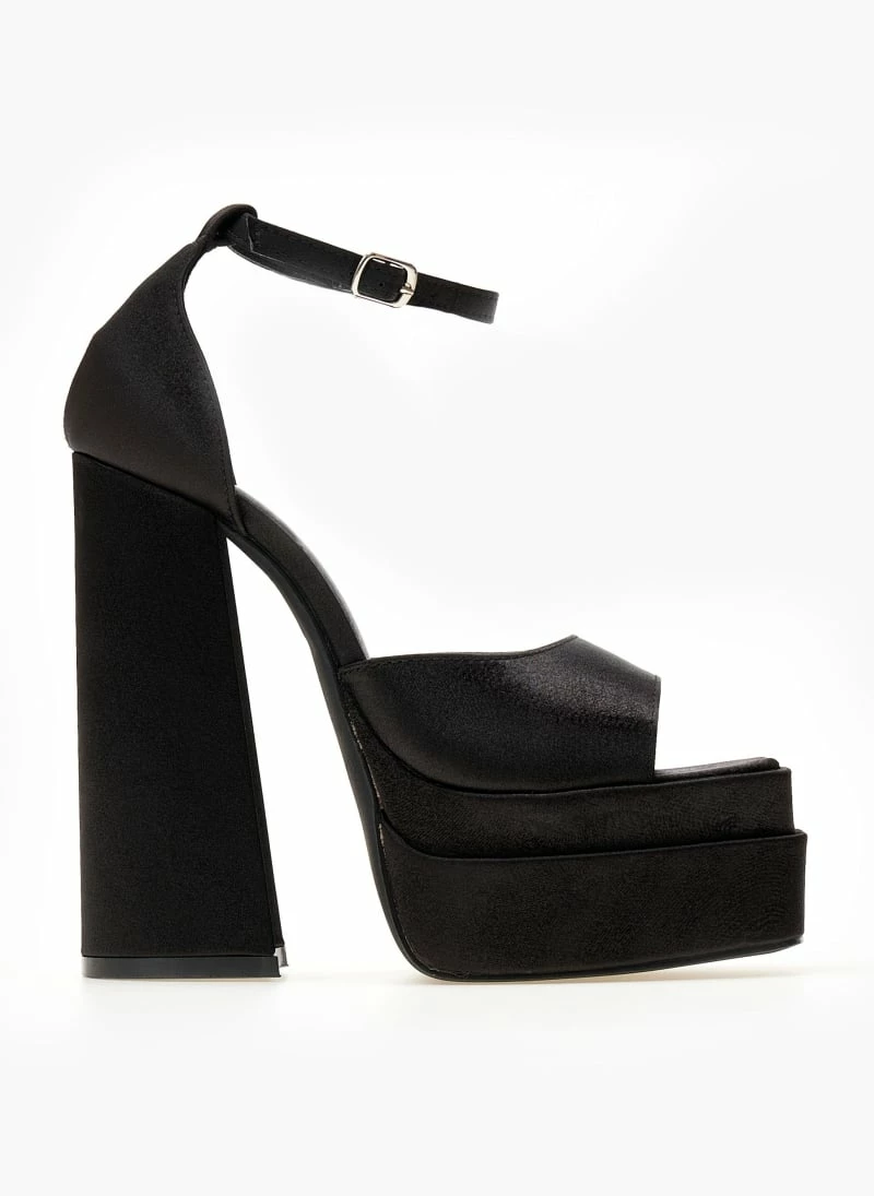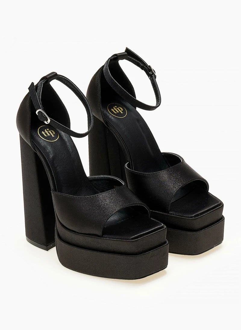 Πέδιλα Platform σατέν TFP με μπαρέτα – Μαύρο