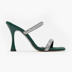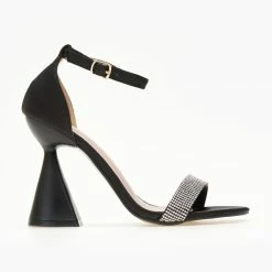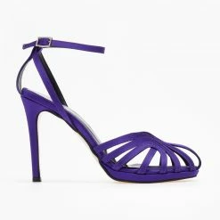 Πέδιλα σατέν tfp με ρετρό σχέδιο. Δένουν με μπαρέτα στο ύψος του αστραγάλου. Έχουν λεπτή φιάπα. Ελληνικής κατασκευής