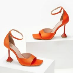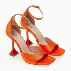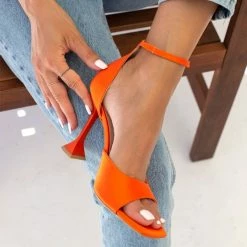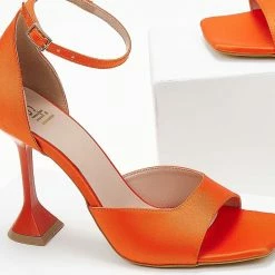 Πέδιλα σατέν Estil με ιδιαίτερο τακούνι – Πορτοκαλί