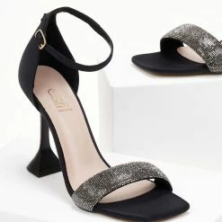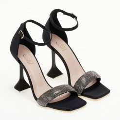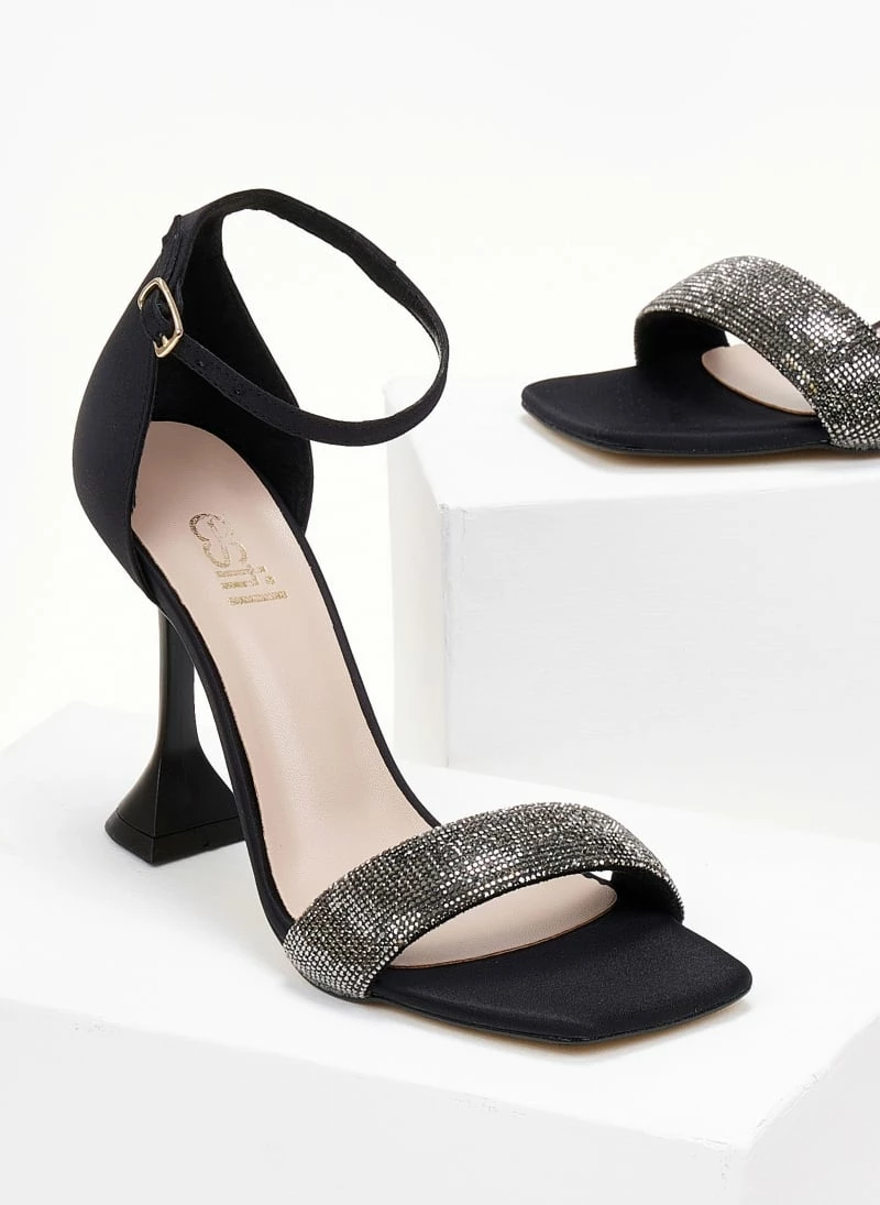Πέδιλα σατέν ESTIL με Strass φάσα – Μαύρο