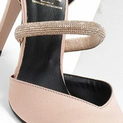 Πέδιλα σατέν με λεπτές φάσες και strass. Έχουν ψηλό λεπτό τακούνι. Καρέ γραμμη. Ελληνικής κατασκευής.