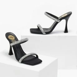 Πέδιλα σατέν με Strass Tfp – Μαύρο