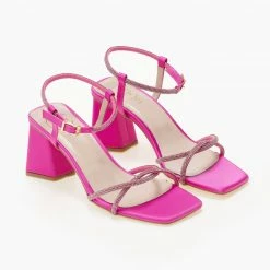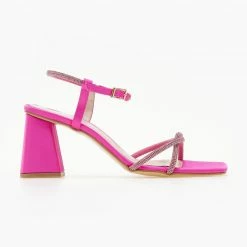 Πέδιλα σατέν TFP με λεπτά Strass – Φούξια