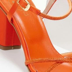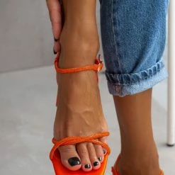Πέδιλα σατέν TFP με λεπτά Strass – Πορτοκαλί
